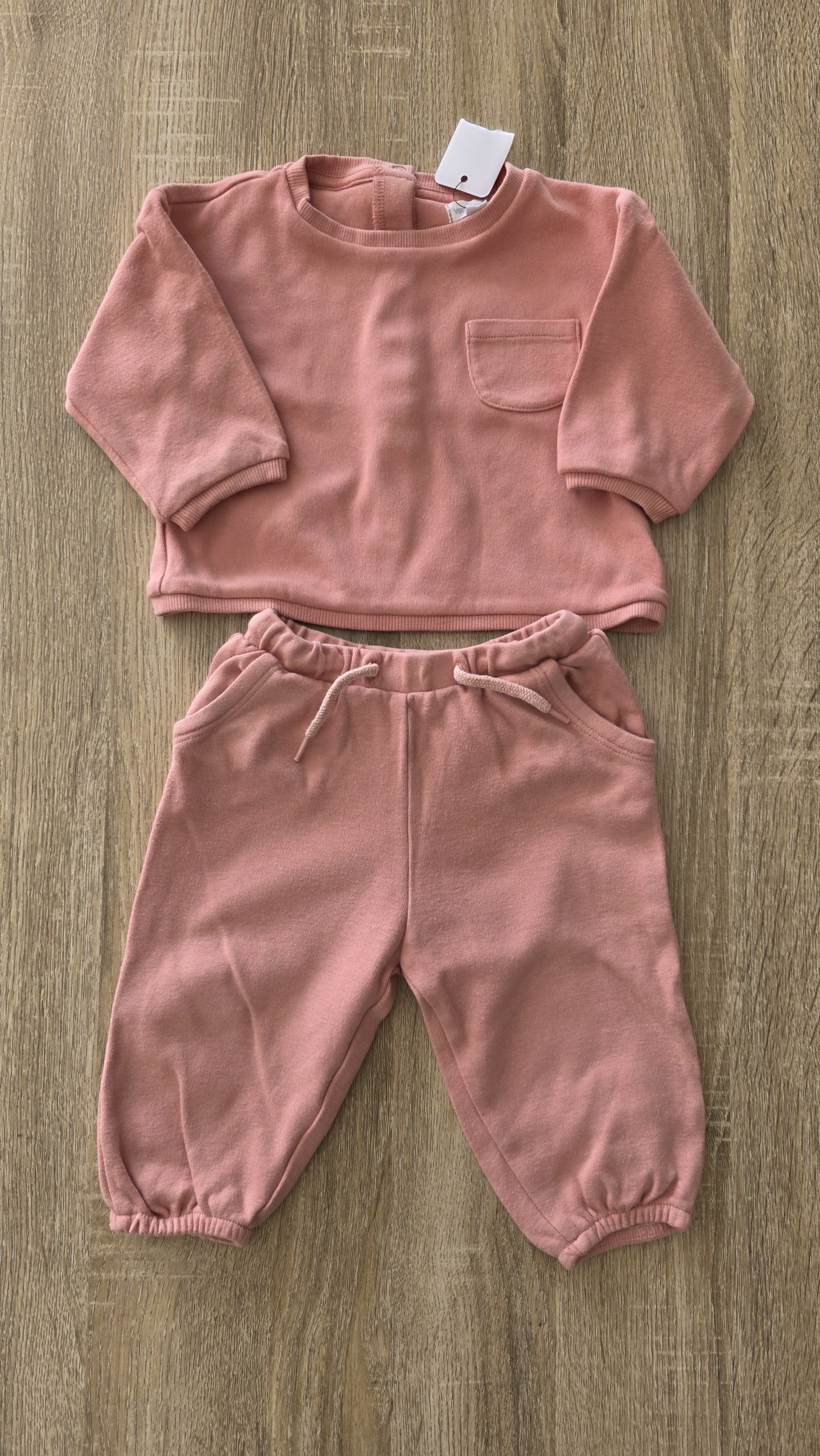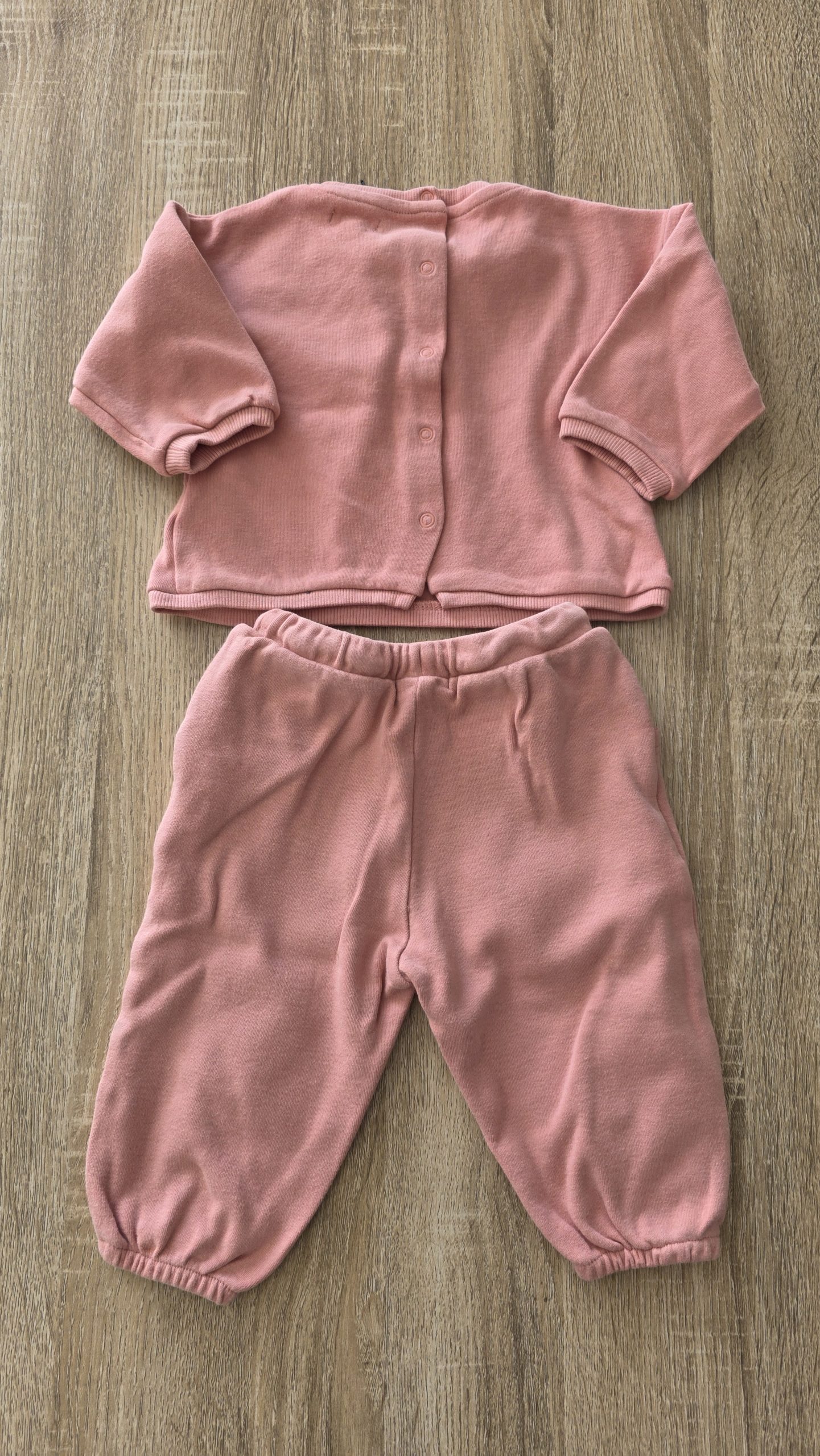 Ensemble avec ouverture et fermeture derrière pour le haut de couleur rose. Petite tâche sur le jogging
