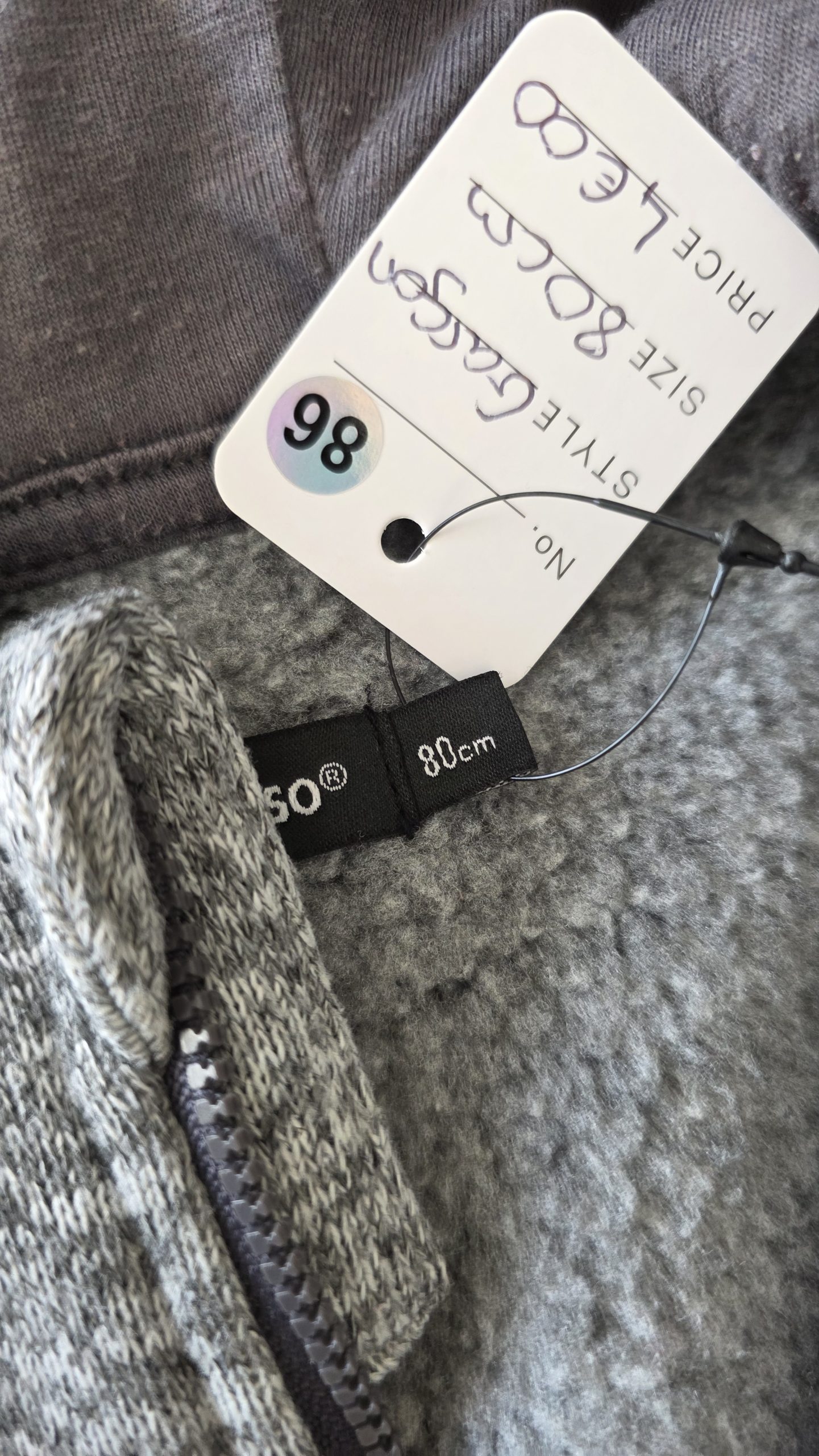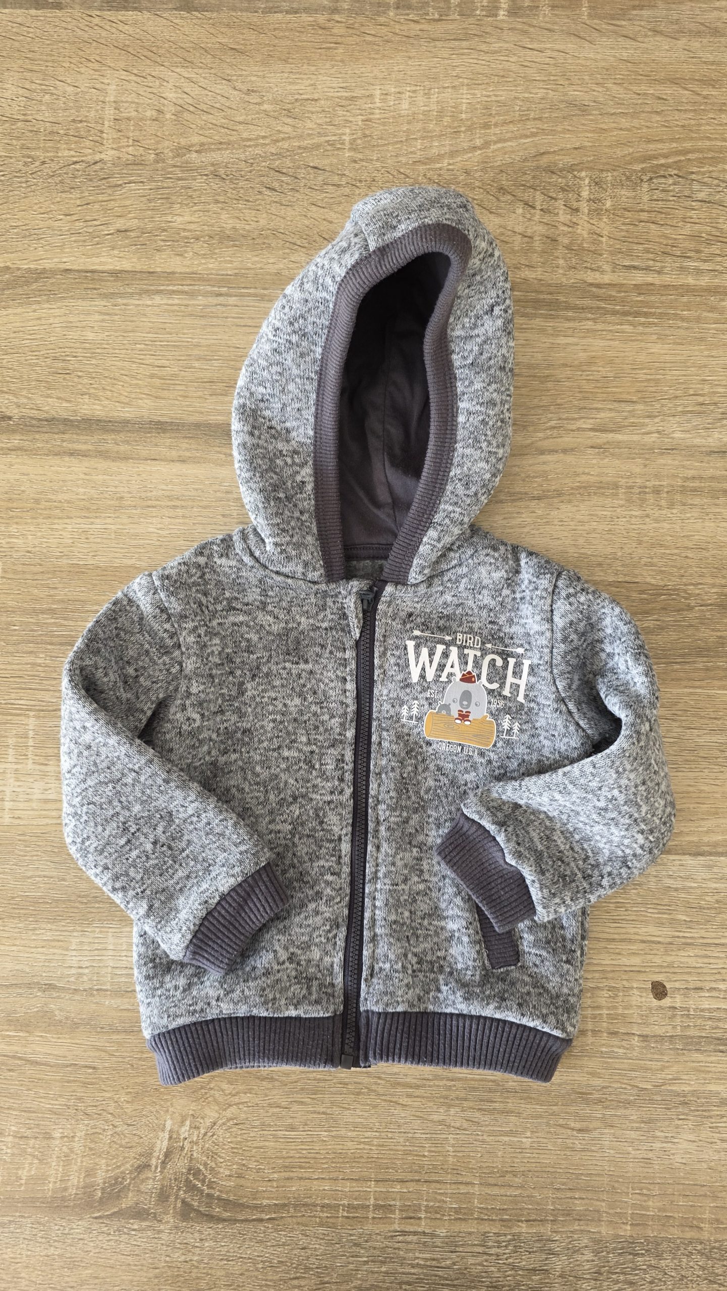 Gilet avec capuche de couleur gris, molletonné à l’intérieur. Parfait pour la mi-saison ou l’hiver