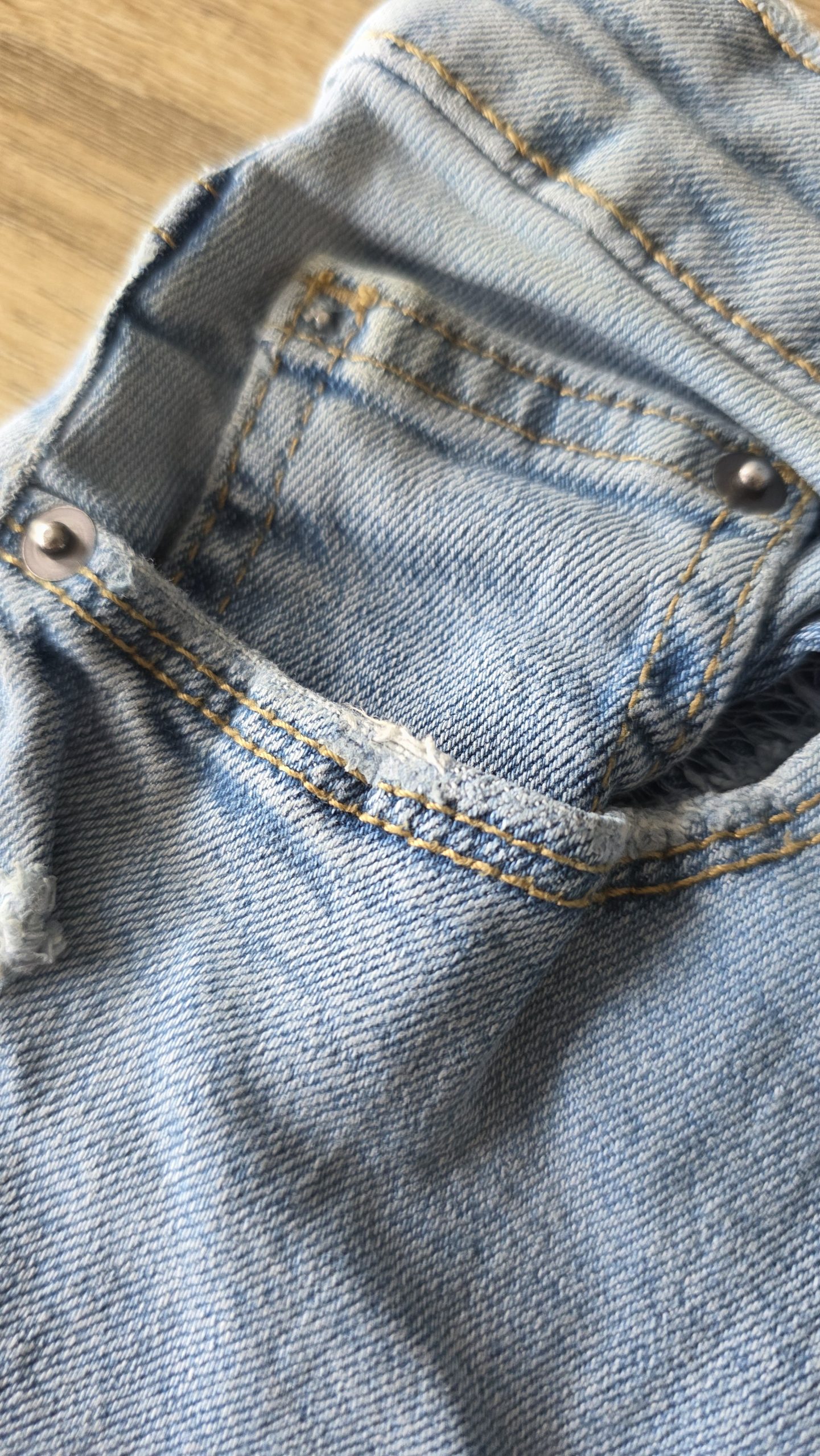 Pantalon de couleur bleu. Les poches sont un peu abimés