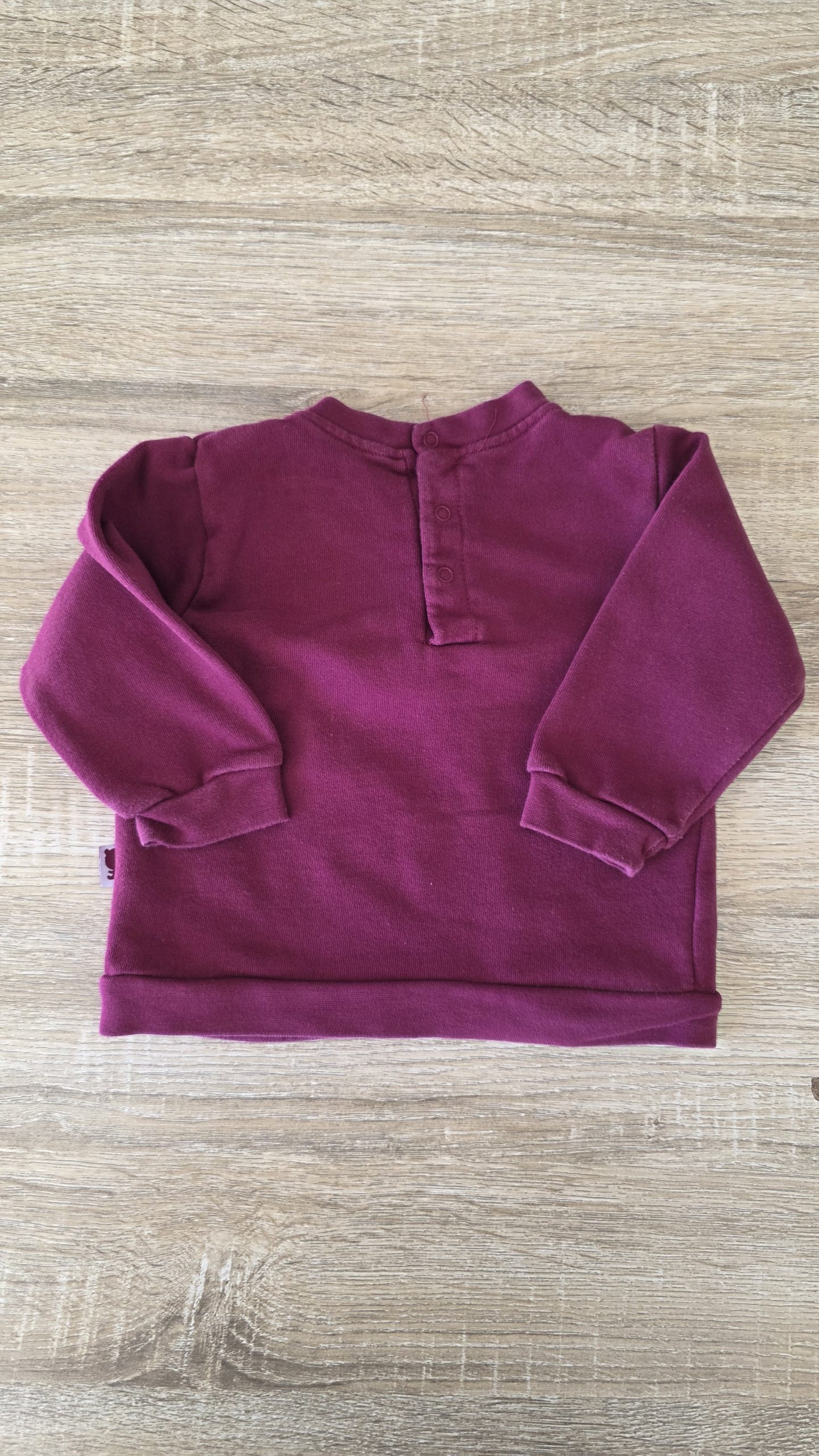 Pull de couleur rouge bordeau. L’image est légèrement abimée