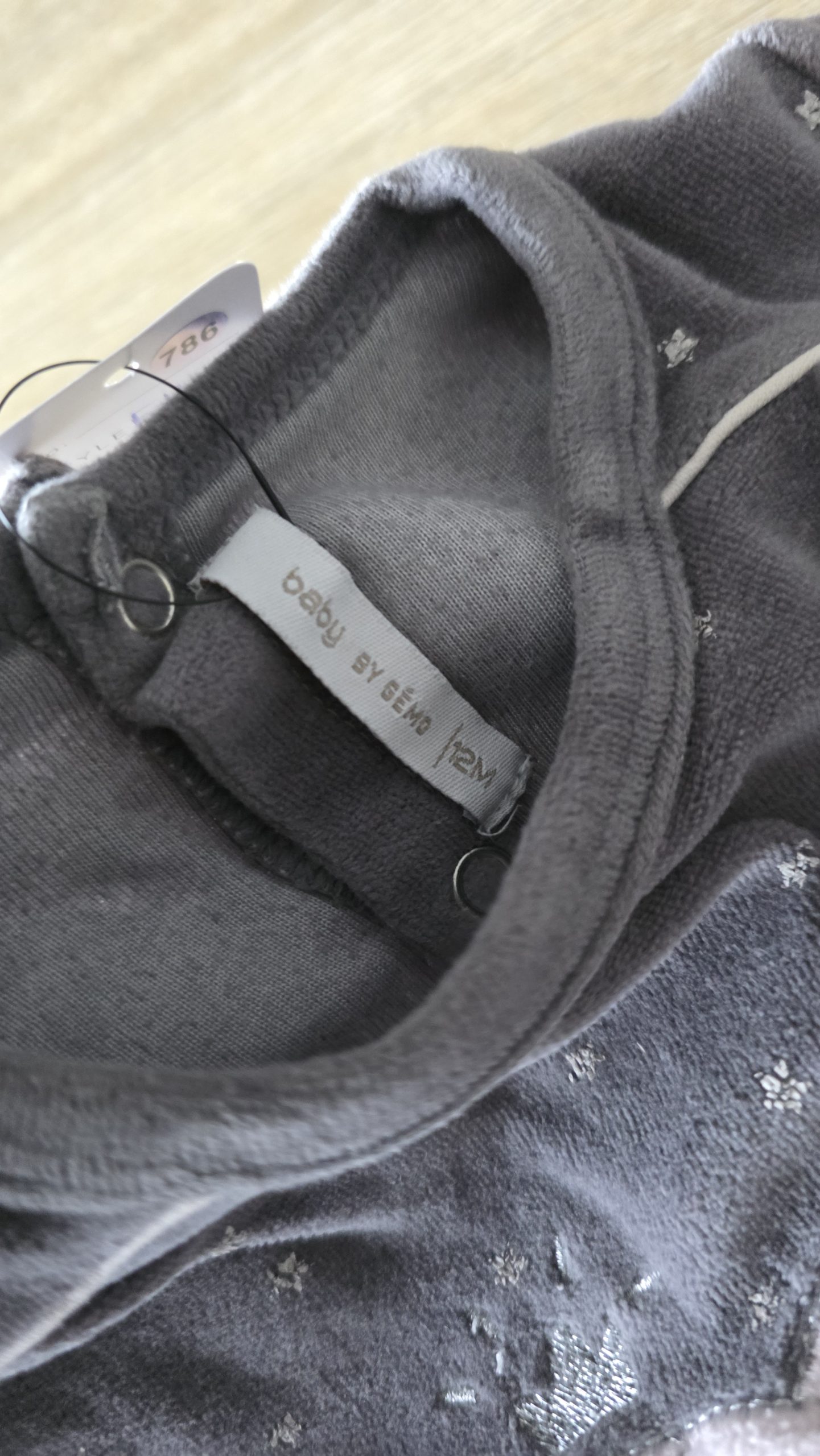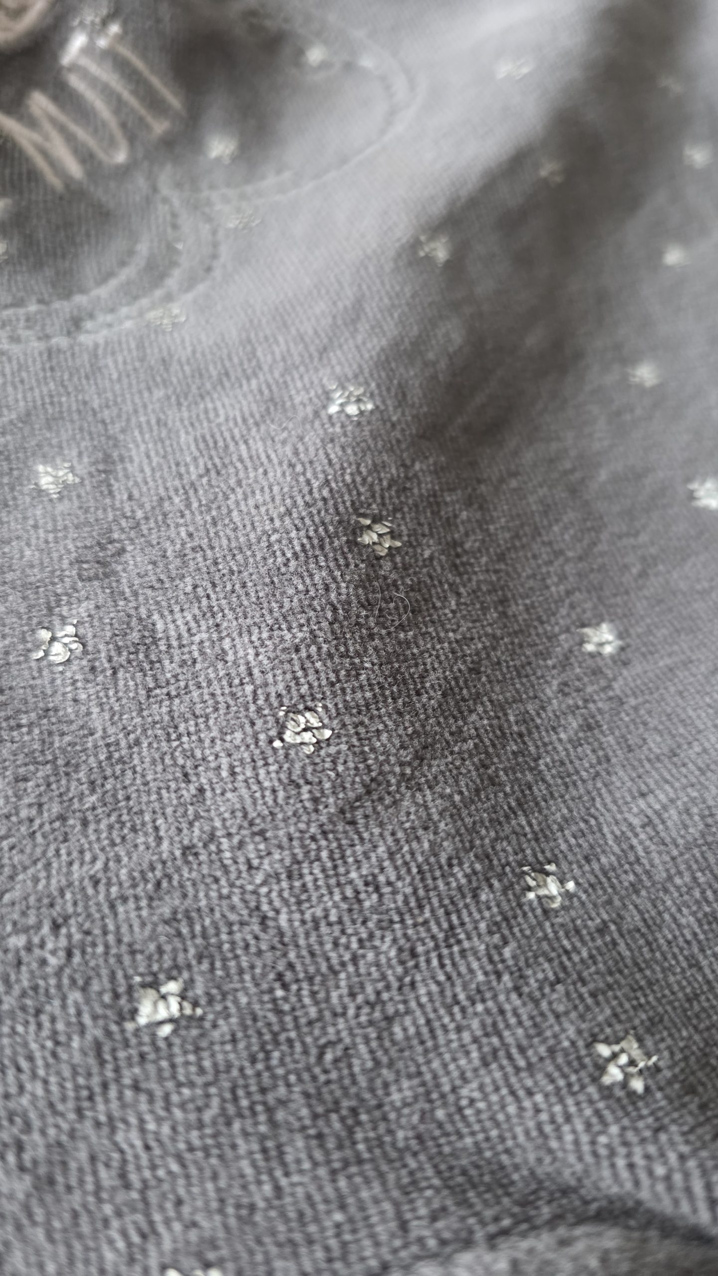 Pyjama de couleur gris. Les étoiles sont craquelés
