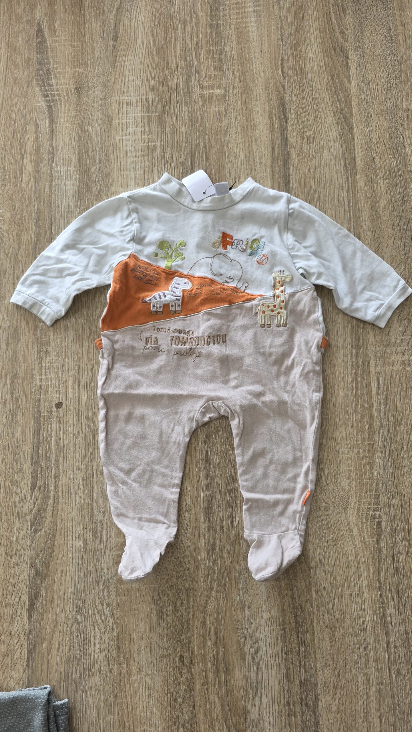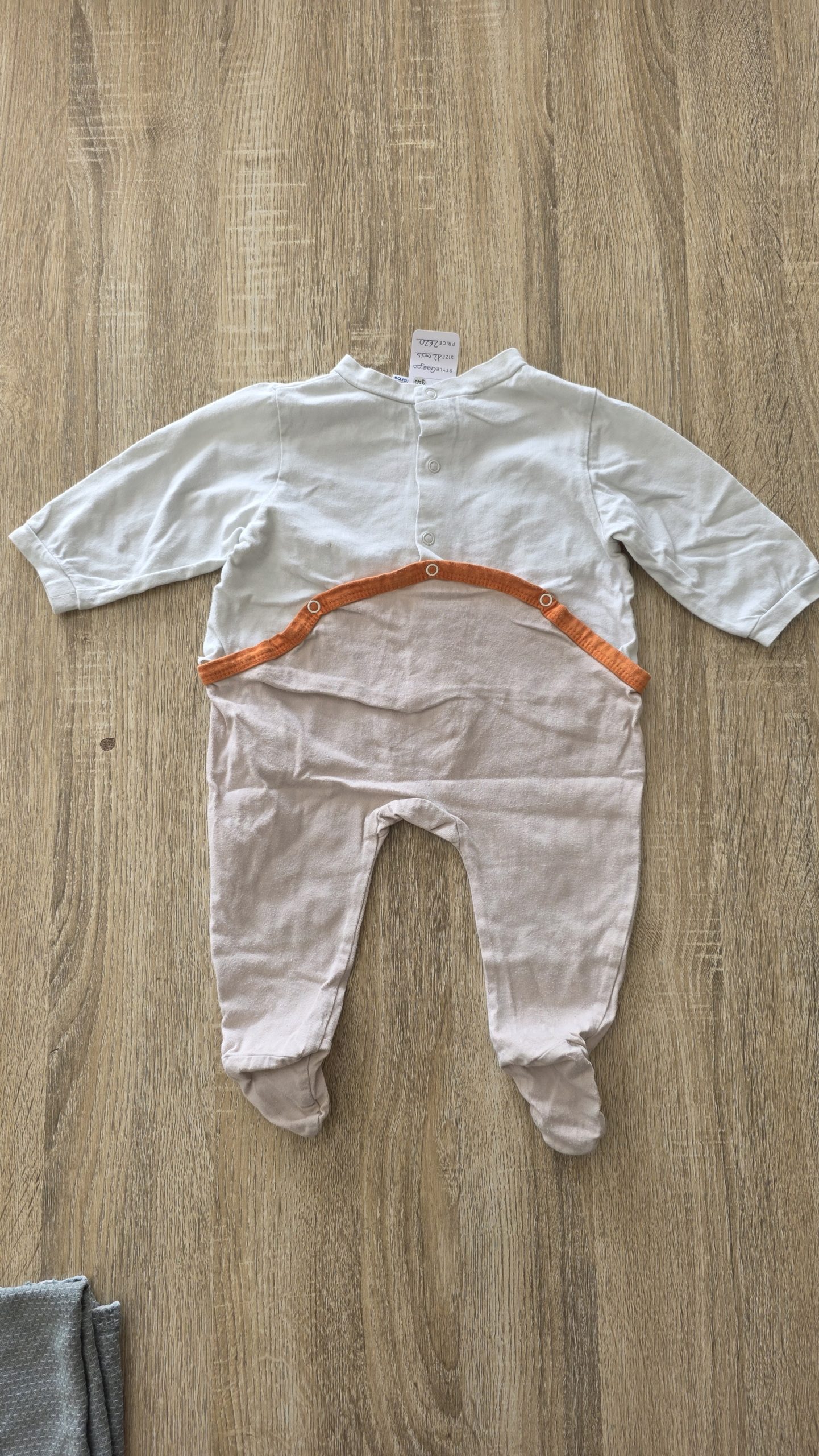 Pyjama de couleur beige et brun. Il a une petite tâche à l’arrière et légèrement boulocher