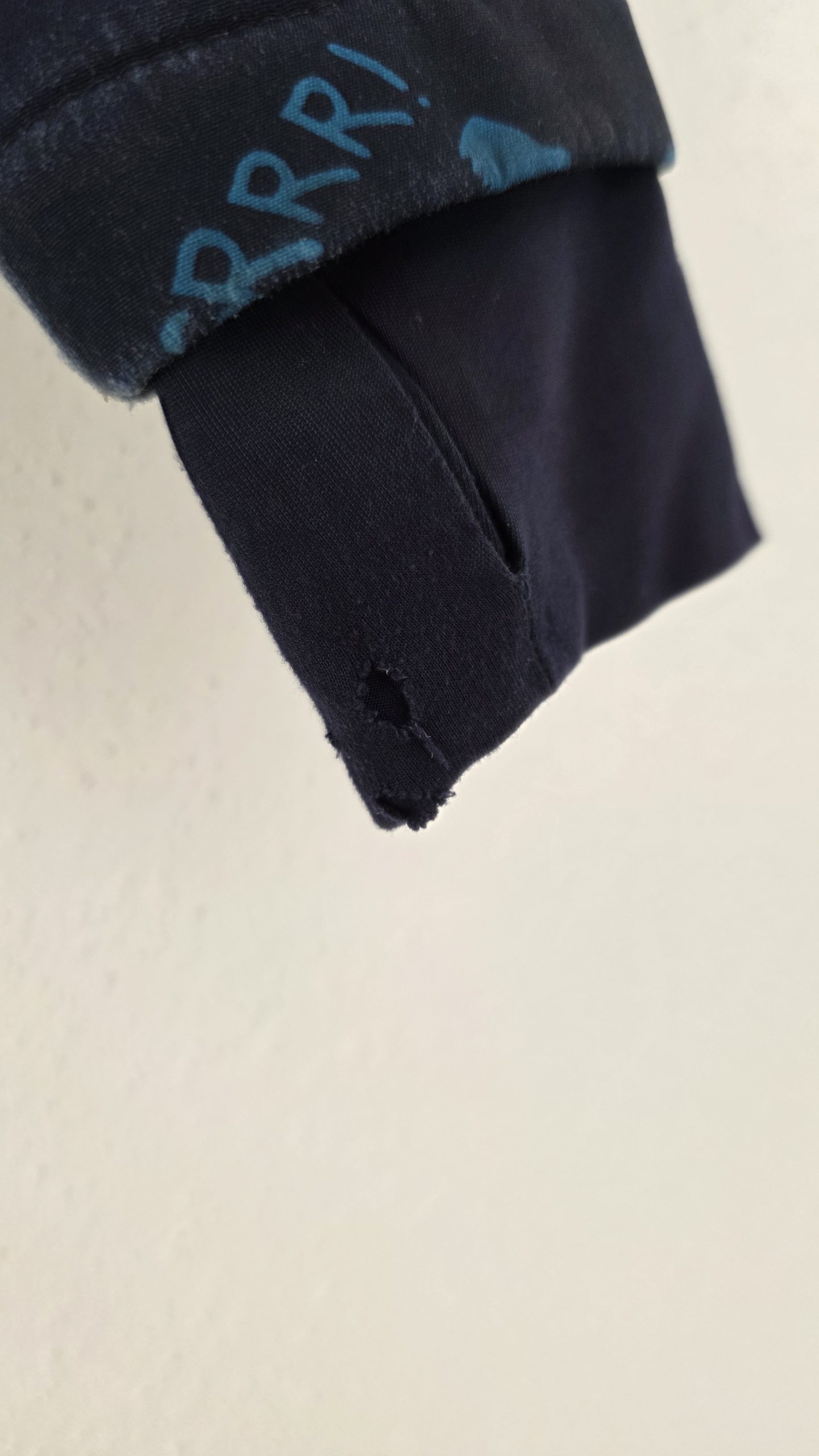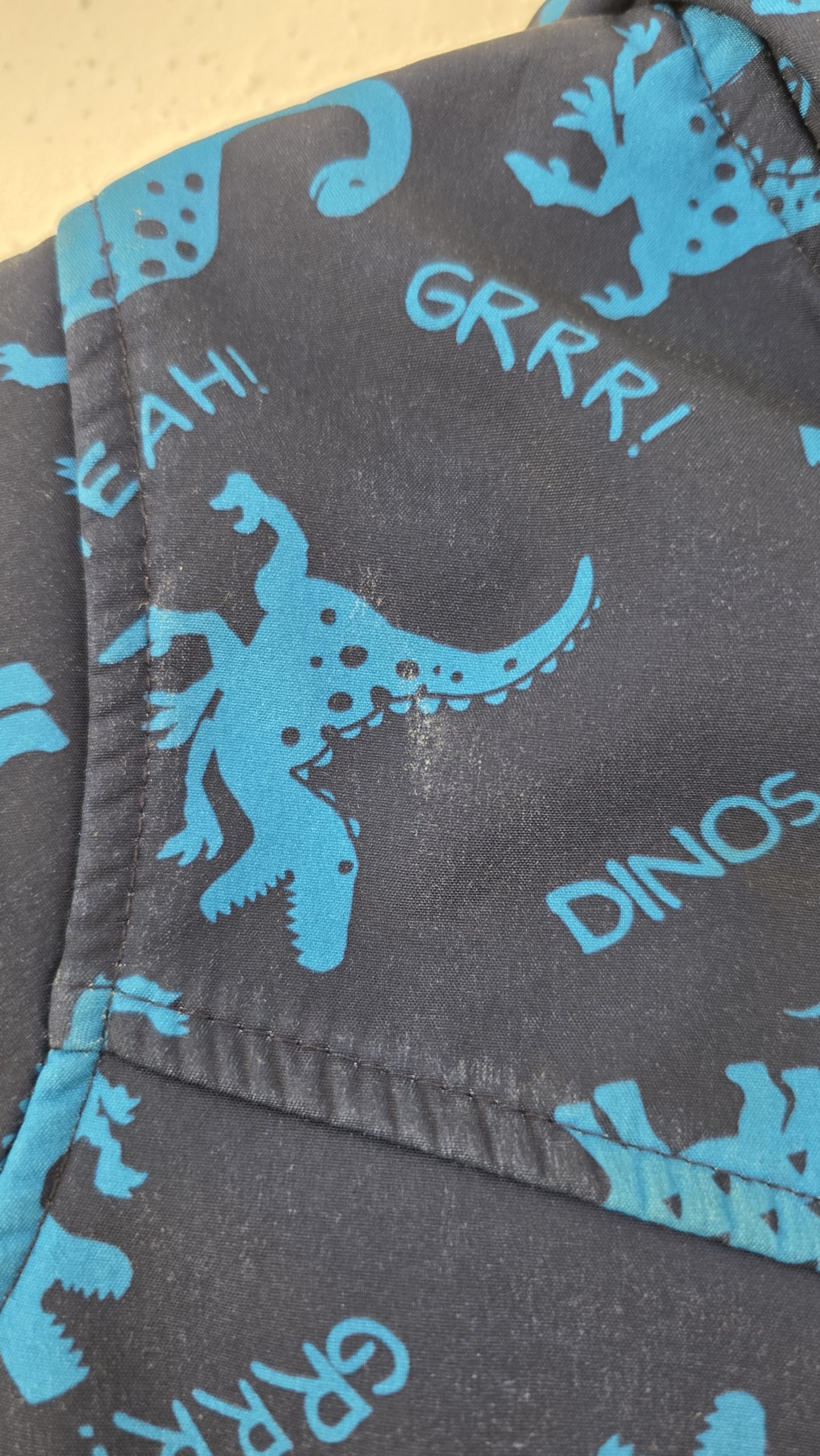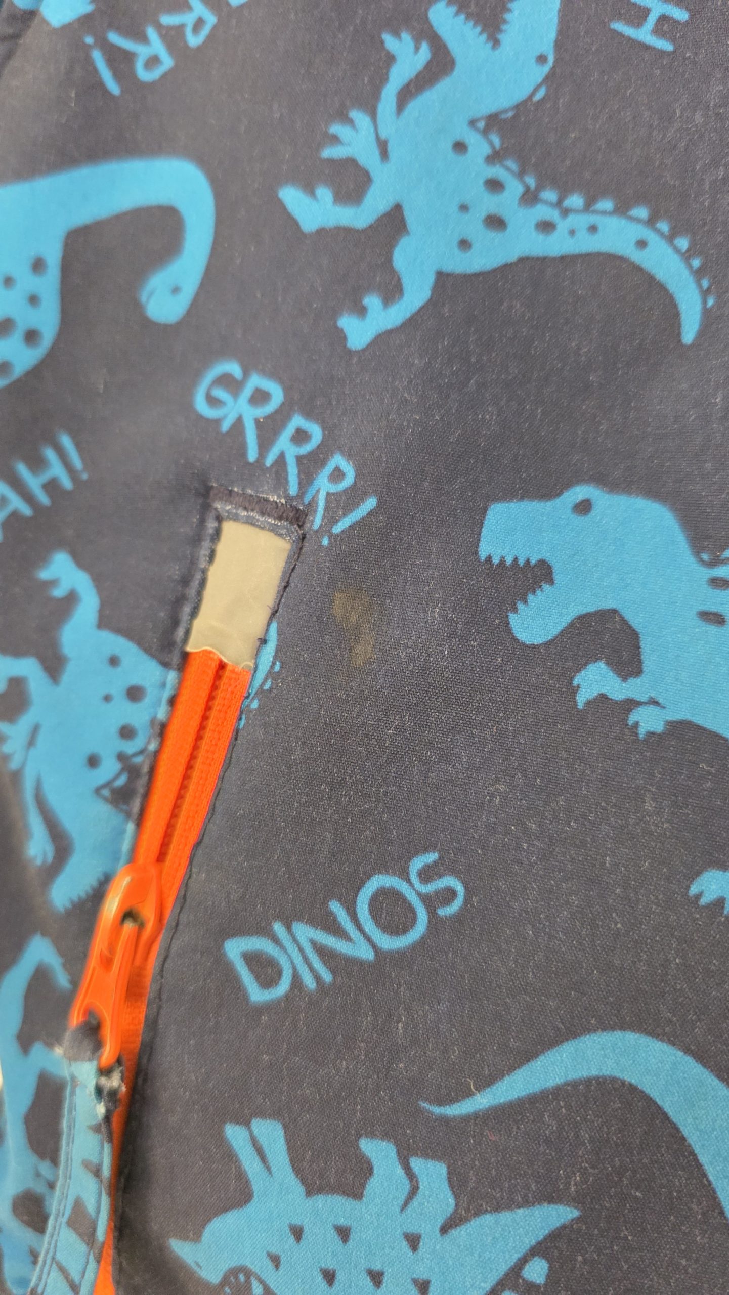 La veste a plusieurs petits défauts comme des tâches.